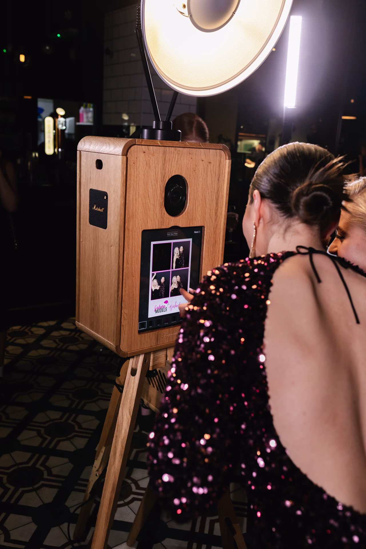 Crafted with natural wood and clean lines, our Signature Booth is a vibe. With its studio-grade lighting, DSLR camera, and customizable digital displays, it blends seamlessly into weddings and brand activations.